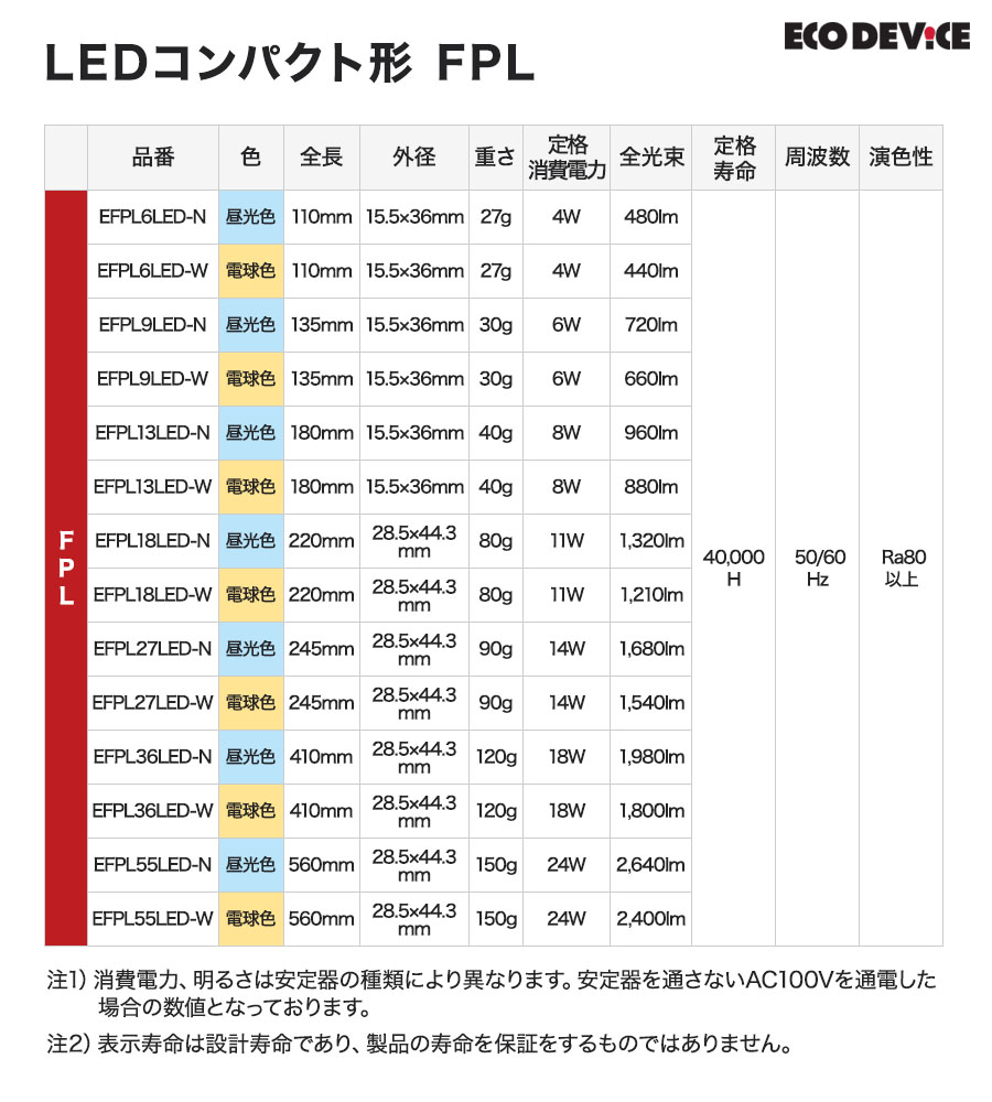 55形 電球色 LEDランプ コンパクト型 FPL 5700…